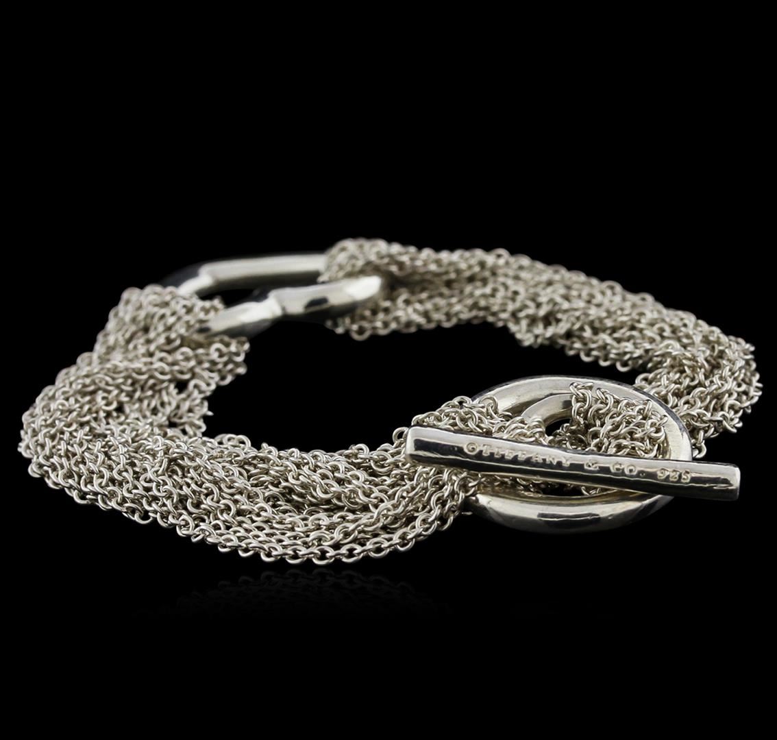 One Tiffany & Co. bracelet featuring: silver weighing 31.35 grams with ten chains.