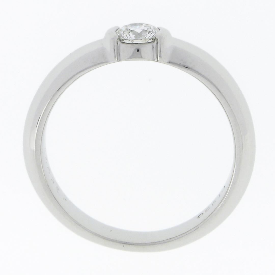 A solid platinum solitaire band ring by Tiffany & co. with 1 round cut natural diamond (F - VVS2 ; 0.26ct). The ring is size 5.5, weighs a total of 6.68 grams, and measures 4.3mm wide.