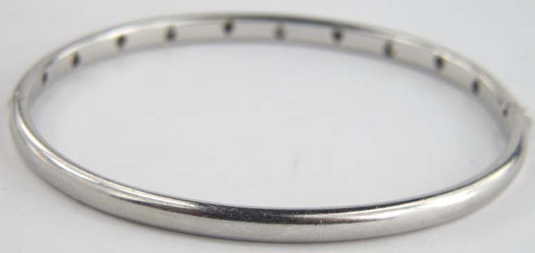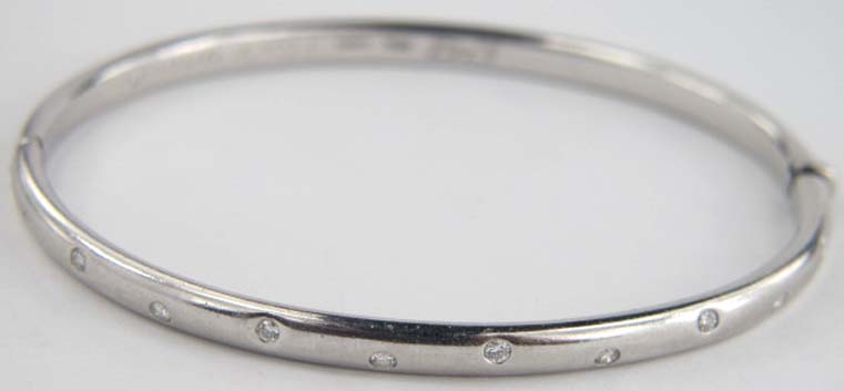 Tiffany & Co Platinum Diamond BangleThe total weight of the bangle is 36.1gramsThe measurement of the 48x57mm and it's 3mm in thicknessThere are 10 diamond pieces .30pts approximately