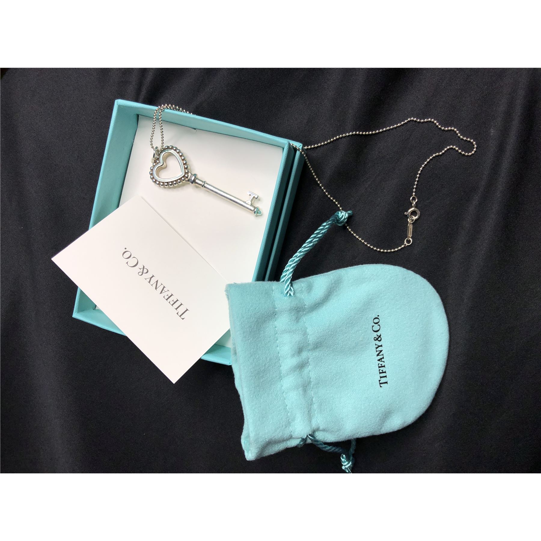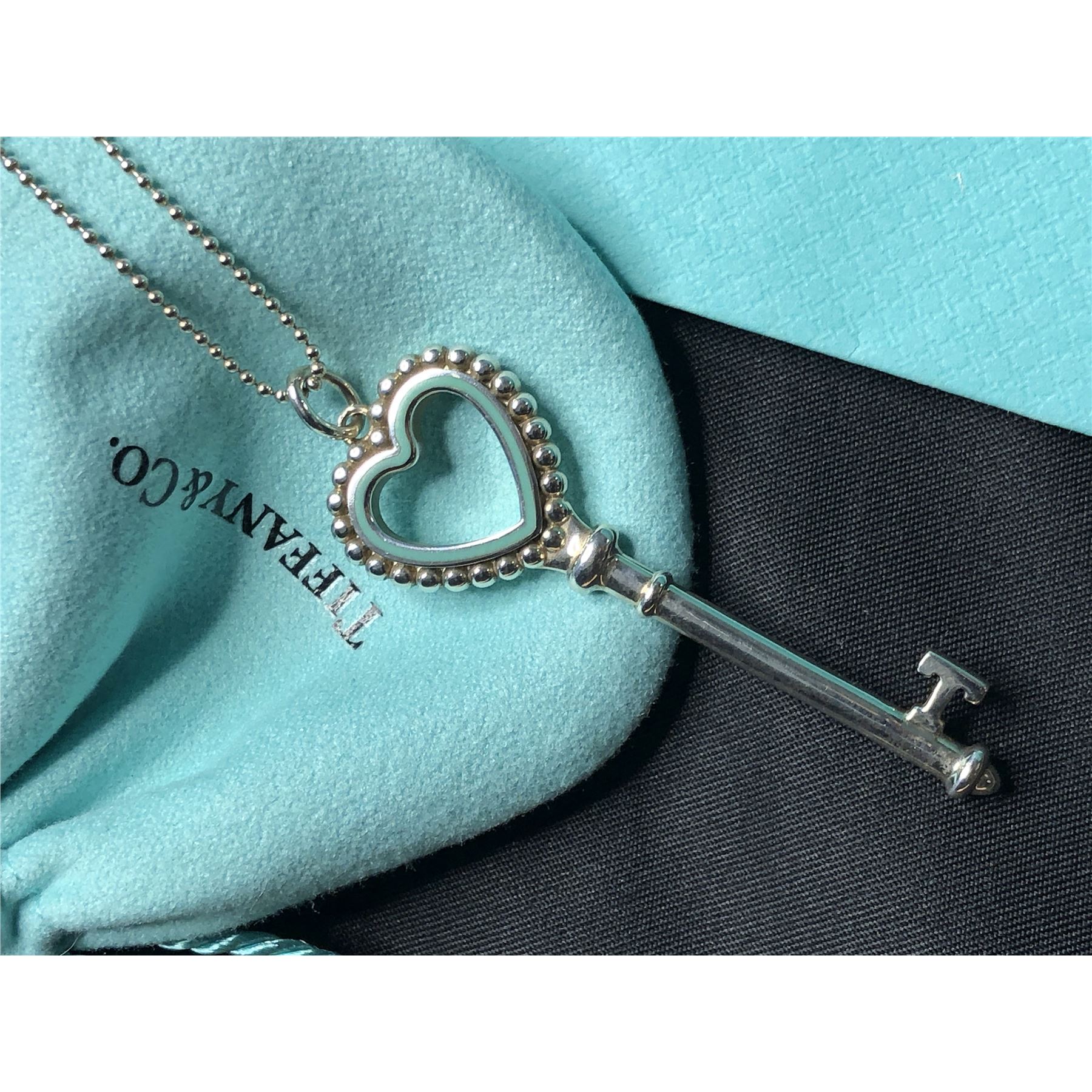 TITLE DESCRIPTION: Tiffany & Co Sterling Silver Beaded Heart Key Pendant Necklace