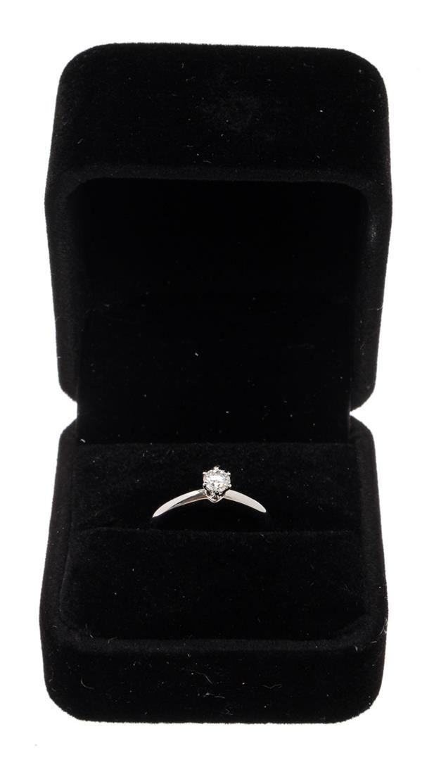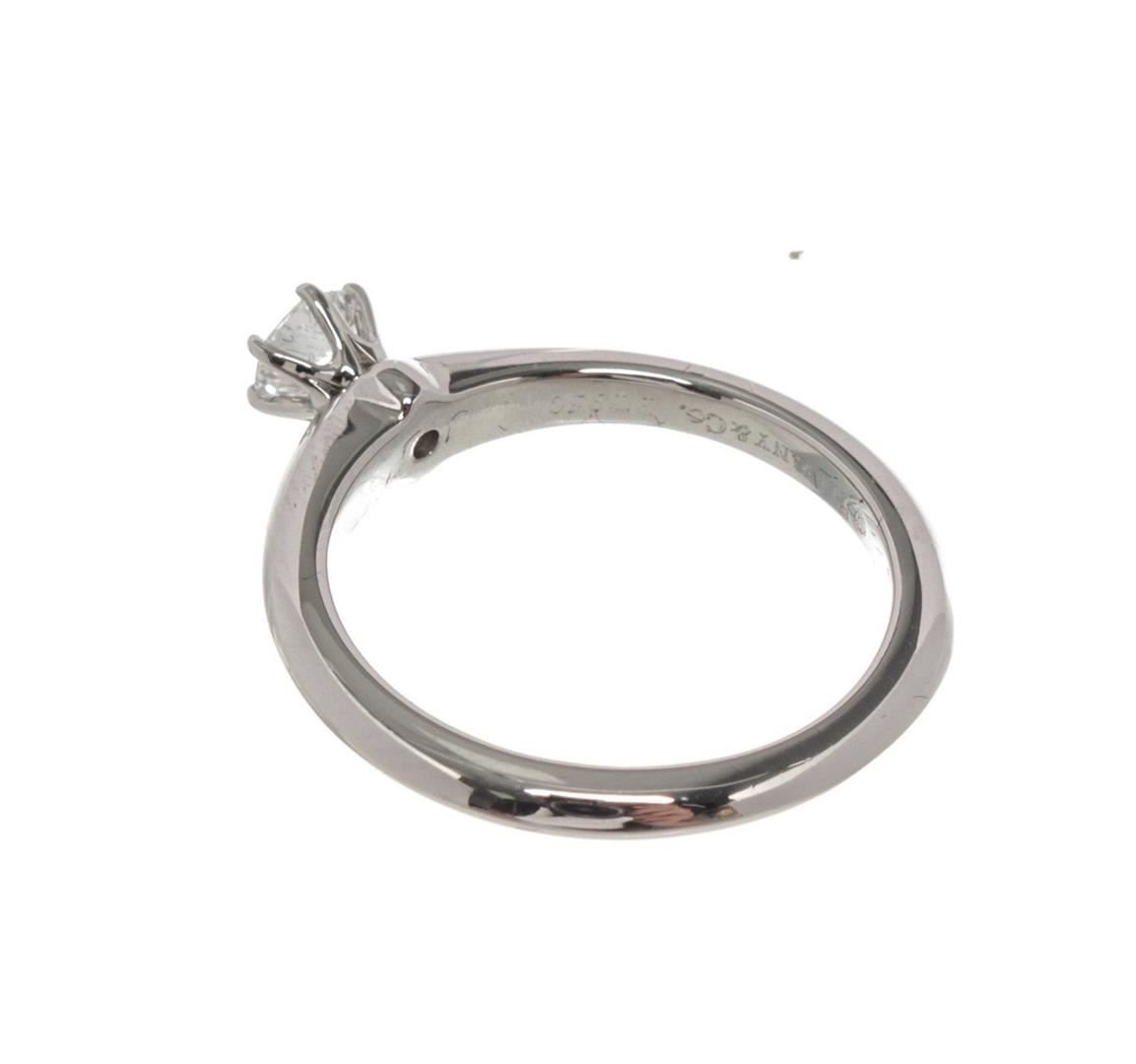 One Tiffany & Co. SiLouis Vuittoner Diamond Solitaire Ring. Item is sold AS-IS. Please check photos and descriptions for all available details. Tiffany and Co. Silver Diamond Solitaire Ring with platinum, silver-tone hardware.Size 4.5