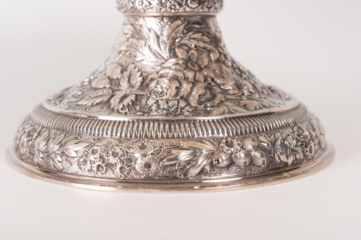 Tiffany & Co. Silver Compote. 11" in diameter x 6 ¼" tall. Fine repousse designs.