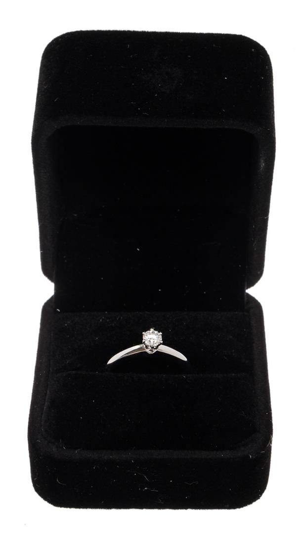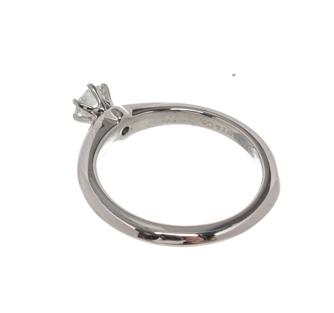 Tiffany & Co. Silver Diamond Solitaire Ring with platinum, silver-tone hardware.