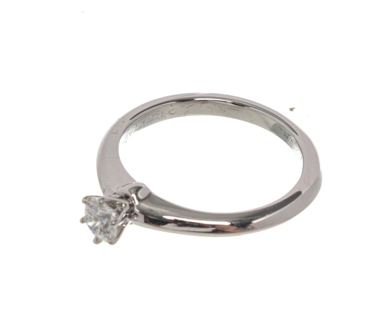 Tiffany & Co. Silver Diamond Solitaire Ring with platinum, silver-tone hardware.