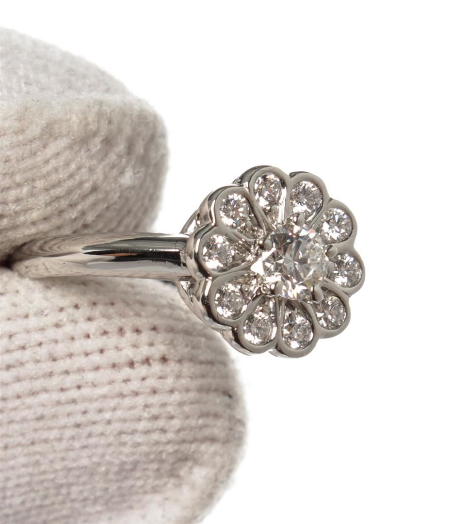 Tiffany & Co. Silver Flower Ring with platinum, silver-tone hardware.
