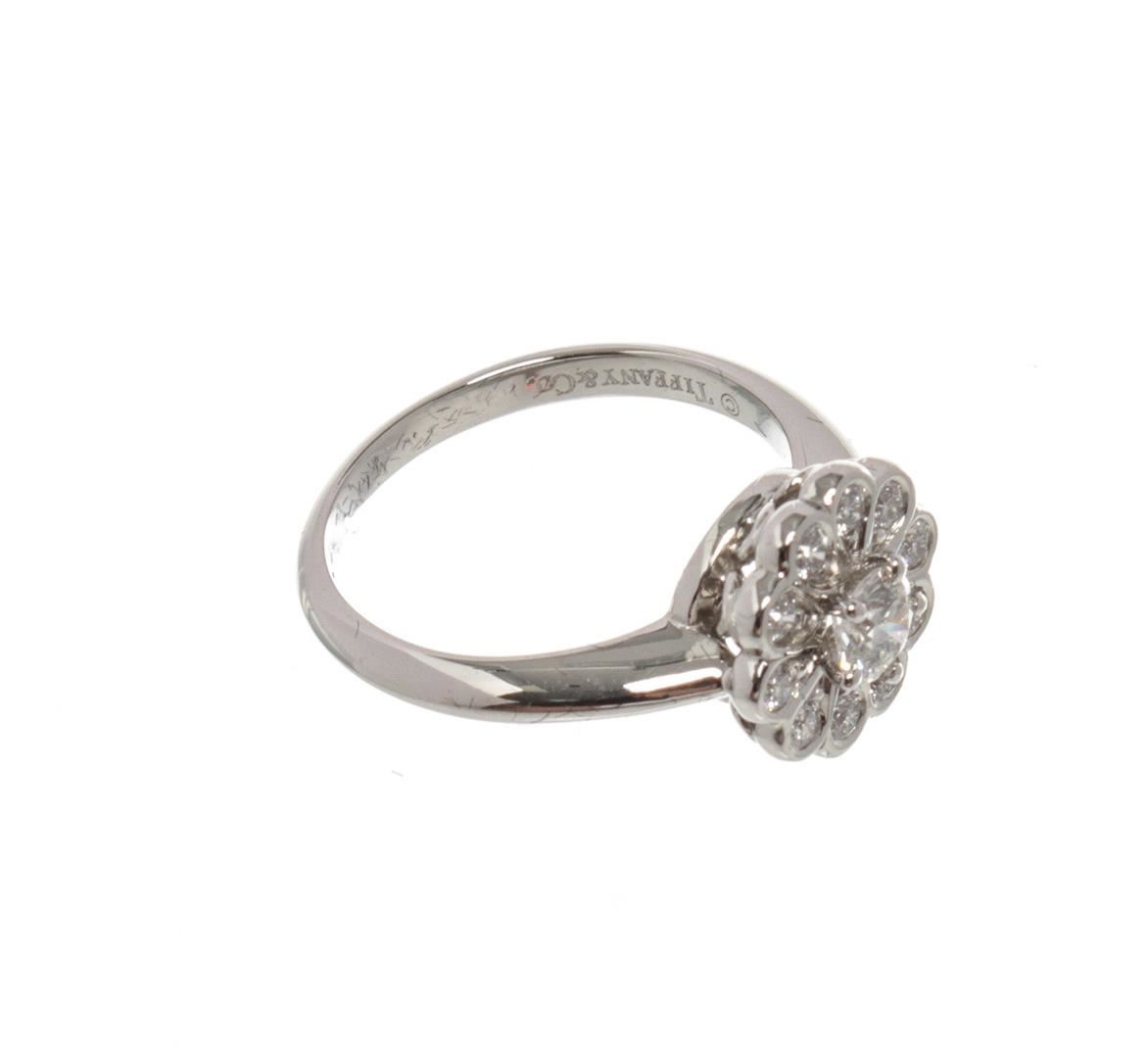 Tiffany & Co. Silver Flower Ring with platinum, silver-tone hardware.