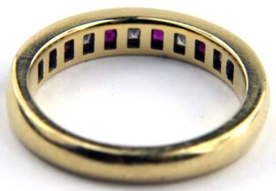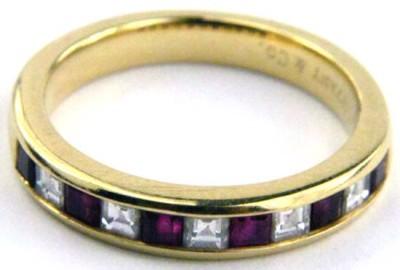 Tiffany & Co Yellow gold Diamond and Ruby RingThe total ring's weight is 4.1 grams.The weight of the Diamond is 25 pts G color VS ClarityThe size of the ring is 5.5 .
