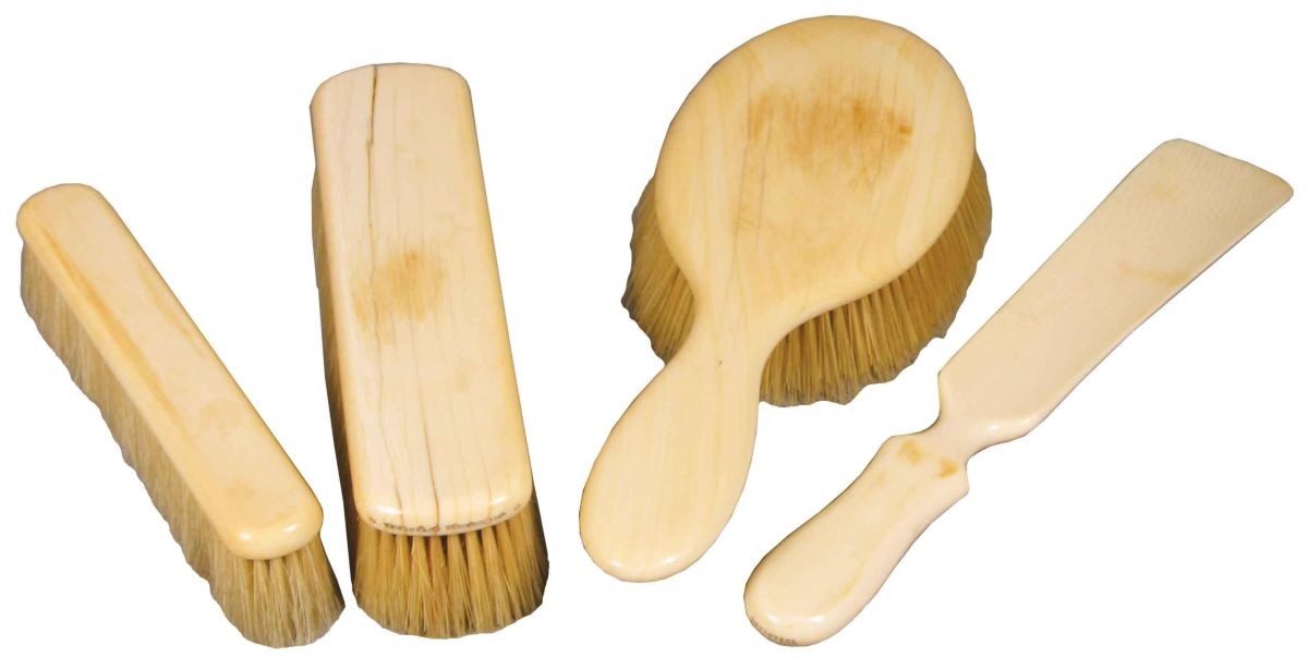 Tiffany & Company Ivory Dresser Set. Three brushes and a shoe horn. One brush has a cracked handle otherwise the set is fabulous.