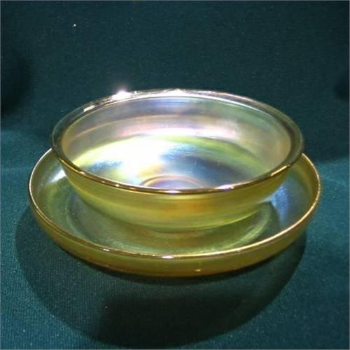 Tiffany finger bowl & under plate. Bowl is 1 3/4" x 4 3/4", Plate is 1" x 5 7/8", Mint.