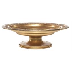 Tiffany Furnaces compote, bronze with its original gold doré patina and tooled and enameled design at edge, inscription to center H.C. and W.E.S. 1876-1926, signed Louis C. Tiffany Furnaces Inc. Favrile 506 and incised 84-2-82, 10.25”dia. x 3”h