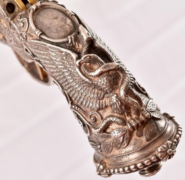 a fine, known & published Tiffany gripped Colt 1862 pocket navy conversion with Mexican eagle/ Snake attributed to L.D. Nimschke in "The Art of the Gun Magnificent Colts Selections from the Robert M. Lee Collection"