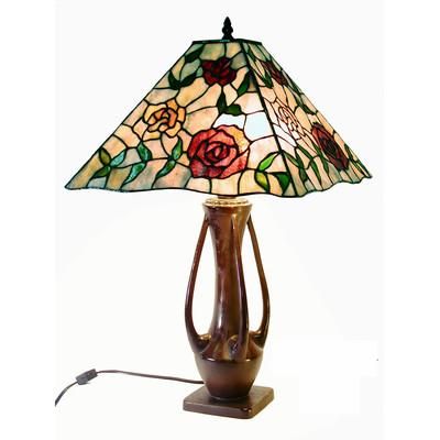 Rose Mission-Inspired table lamp has been handcrafted using methods first developed by Louis Comfort Tiffany measures 25in H x 14in W x 14in D