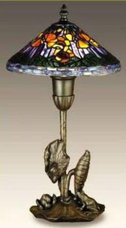 Tiffany-style. *10"W x 19"H *Shade 10" Diameter *1 x 60W Med Base *Golden Bronze Finish