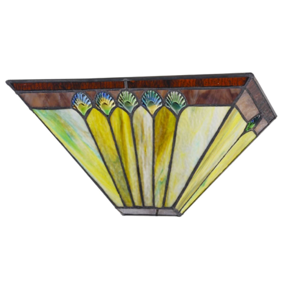 Tiffany-style Mission, 1 light, shell design, art glass, sconce light with textured black finish. Â 5" H X 12" W X 6" L. **** You bid is for 1 sconce light, but multiples of this item are available by request - single sconce, matching pair, set of four or set of 6.Â