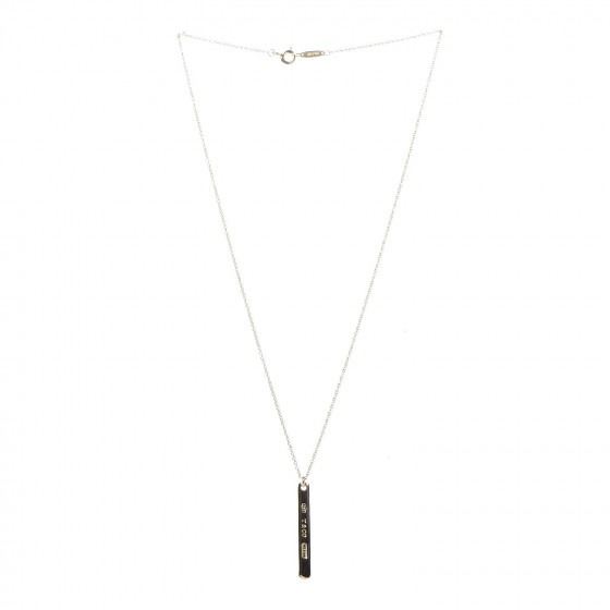 Crafted of an 18 karat yellow gold chain that holds a bar shaped pendant stamped with signature Tiffany and 1837 engravings.