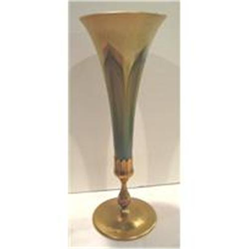 <tr><td><font size="2" face="Arial, Helvetica, sans-serif"><strong><font color="#000033">Title:</font></strong>Tiffany Pulled Feather Trumpet Vase Bronze Base</font></td></tr>