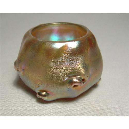 Outstanding Tiffany Salt with an embossed design. Almost 2" wide and 1 1/2" high. this salt has a fire gold lustre to it. The inside colors are hard to capture, but it has that blue/green lustre that Tiffany is known for. Condition: Perfect. It is signed and numbered on the bottom. Photos detail this. </td></tr><tr> <td> </td></tr><tr> <td>Reference #: tiff1</td></tr><tr><td>Condition:Perfect</td></tr><tr><td>Year:1920's</td></tr><tr><td>Title:Tiffany Salt - SIGNED & #'d</td></tr><tr><td>Location:New York, New York</td></tr></table>