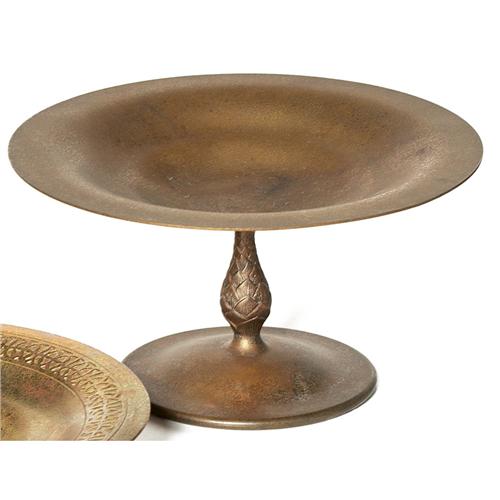 Tiffany Studios compote, flaring form with a pinecone stem, original gold doré patina, signed Tiffany Studios New York, #1665, 9"w x 5"h