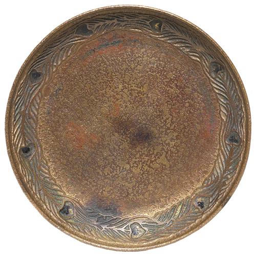 Tiffany Studios tray, round form in original gold dore patina with peacock feather design, impressed Tiffany Studios New York #1740,3in.w