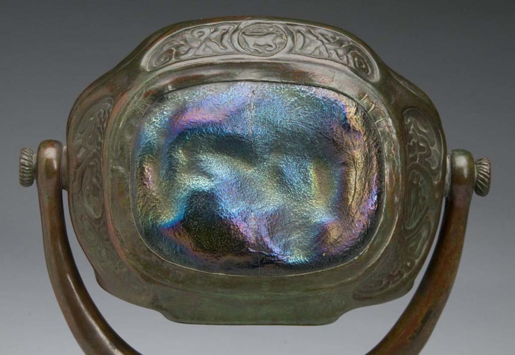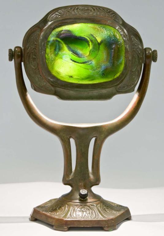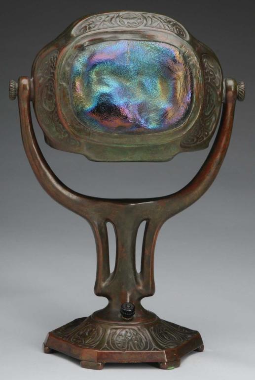 Description Base marked Tiffany Studios New York #541. Zodiac Sign on base and lamp top. Heavy turtle back inserts. One has longitudinal four inch long stable crack. Bronze has a wonderful patina. Works well. Condition (Excellent). Size 15" T.