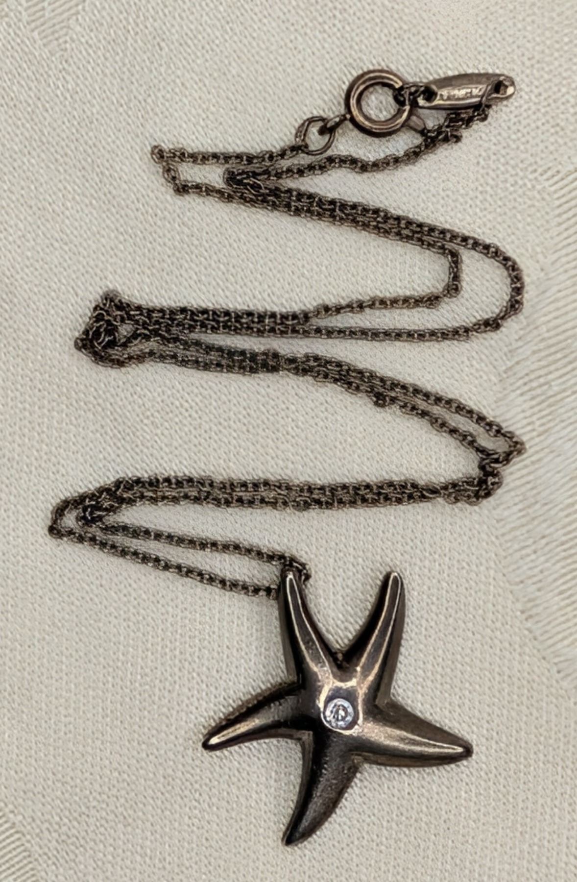 Elsa Peretti T&Co. Starfish with single diamond accent - Sterling Silver chain included