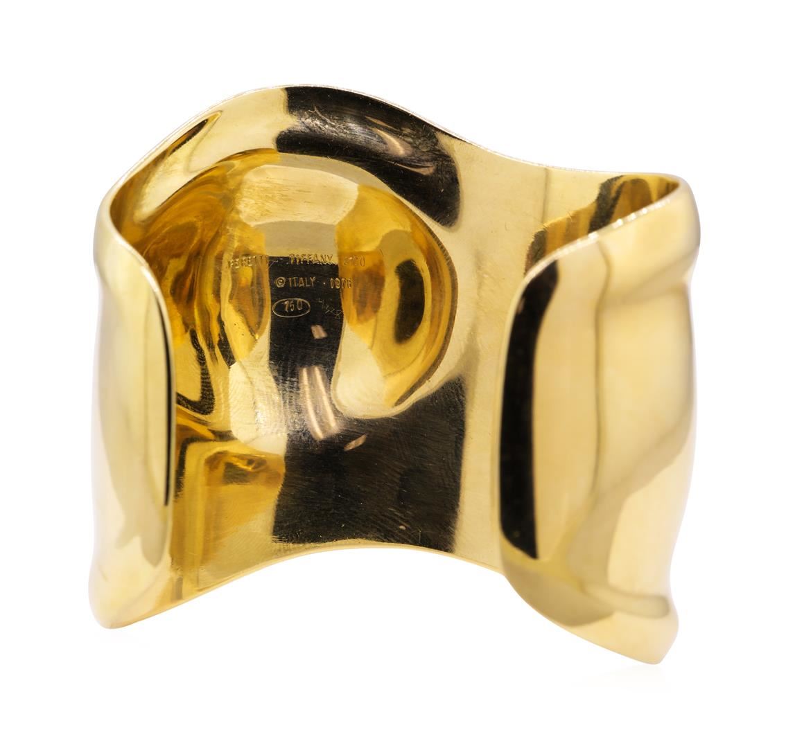 One Tiffany and Company Elsa Peretti Bone Cuff bangle featuring: 18KT yellow gold weighing 105.6 grams.