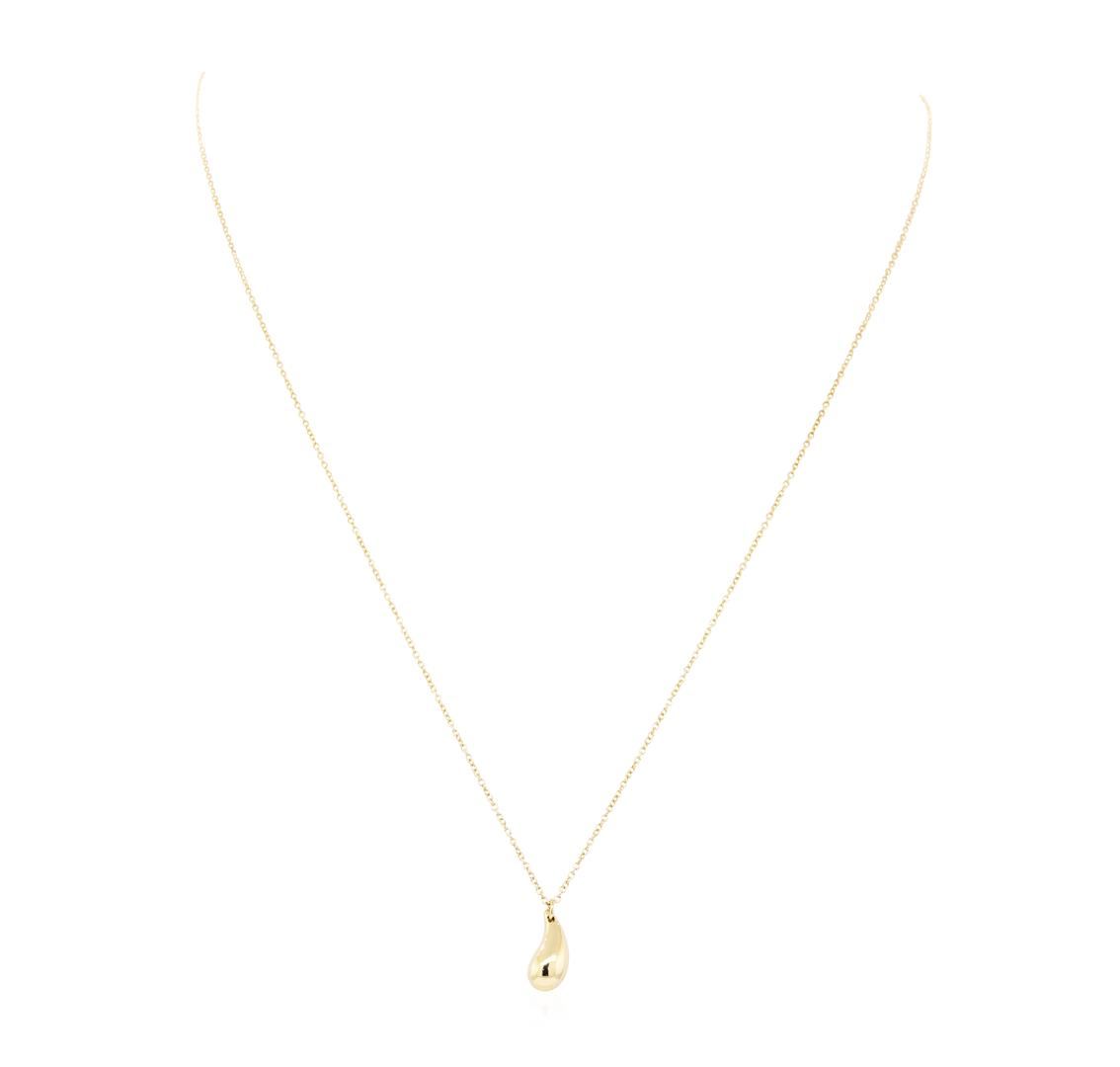 One Tiffany and Company Elsa Peretti teardrop pendant with chain featuring: 18KT yellow gold weighing 5.0 grams. The necklace measures approximately twenty inches in length.