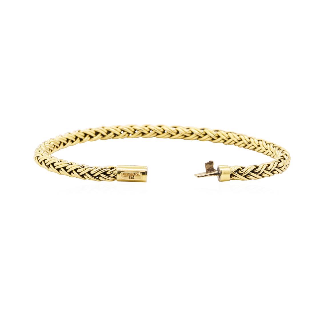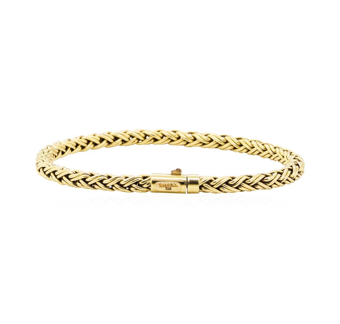 One Tiffany and Company golden weave wheat chain bracelet featuring: 18KT yellow gold weighing 12.5 grams. The bracelet measures approximately seven inches in length.
