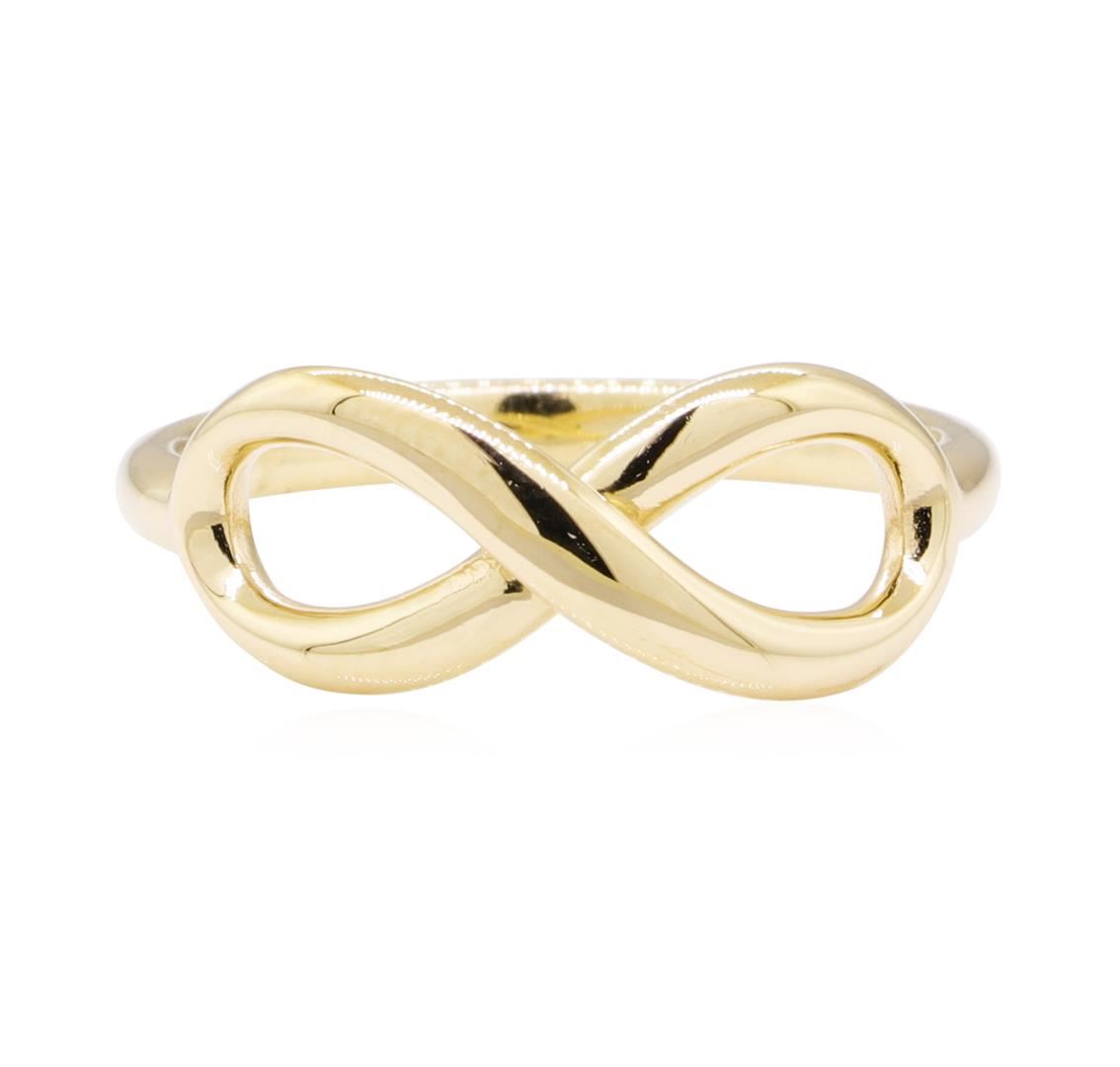 One Tiffany and Company infinity ring featuring: 18KT yellow gold weighing 3.6 grams.