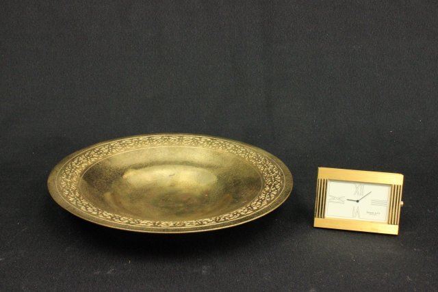 Plate #2707, approx. 8.75" W. Clock approx. 2 3/8" W. From the Estate of Charlotte Thomas. Slight discoloration on gilding.