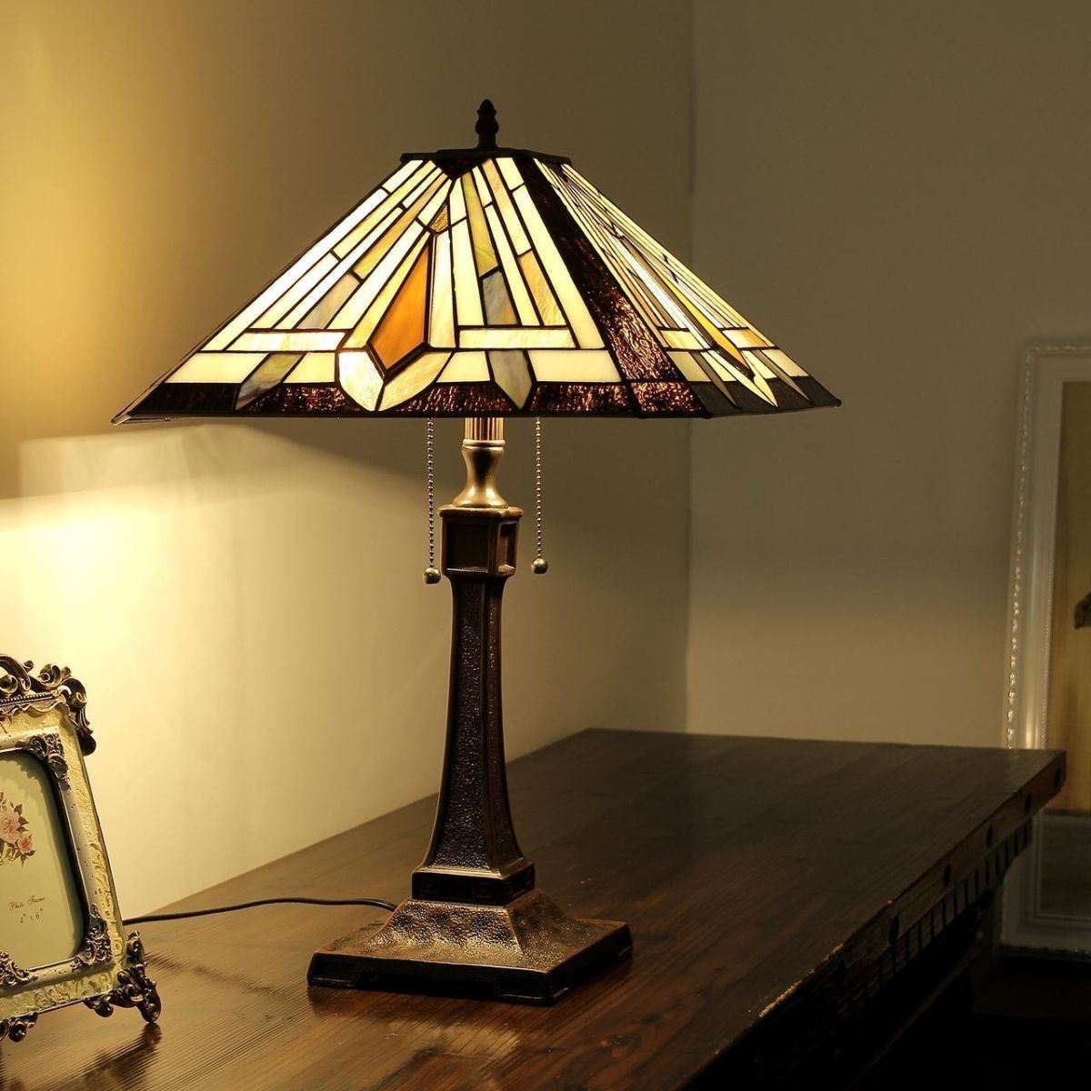 Denton, a majestic mission style table lamp features an-eye catching drop-shaped glass in the middle. Featuring 164 pieces of gorgeous, warm toned copper-foiled stained Tiffany glass, this table lamp will complement your classic yet modern home. Glass TypeTiffany-glass Net Weight (lbs)9.08 Overall Length15.75 Overall Width15.75 Overall Height23 Overall Diagonal20.87 Shade Width15.75 Shade Height7.08 Shade Diagonal20.87 Base Width6.69 Base Height18.3 Base Diagonal9.45 Base/Stem MaterialsResin; Metal Electric Wire Length72 Threaded Pipe/Finial Length5.43 Threaded Pipe/Finial MaterialMetal Wattage/Bulb Types(2) 60 Watt max E26 Type A Bulb (not included) Switch TypePull chain Est. Glass Cuts164pcs glass cut Light DirectionDownlight Specific UsesIndoor FinishDark Bronze Overall MaterialsGlass, resin, metal & electrical components Glass Thickness0.12 Shade ShapeSquare CertificationUL Listed Consumer NoticeProposition 65 UPC Code602573220641