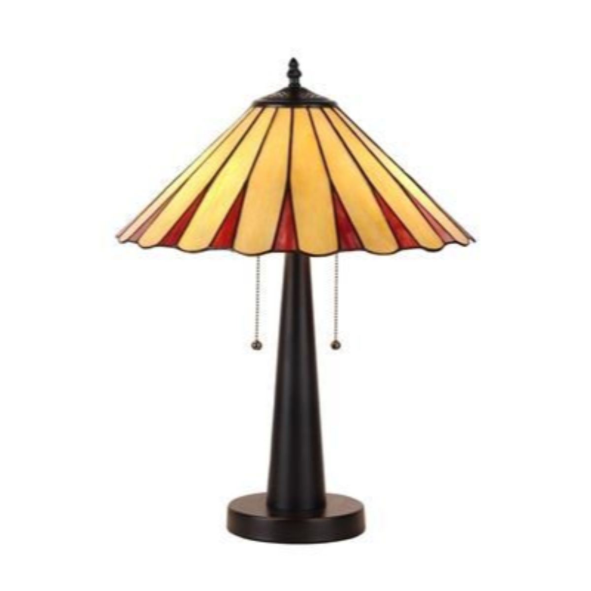 "PALOMA" Tiffany-style 2 Light Table Lamp 16" Shade Shade Width16.10 Shade Height6.50 Overall Height21.70 Base Width6.30 Base Height16.10 Threaded Pipe/Finial Length5.80 Net Weight (lbs)6.20 Light DirectionDownlight Wattage/Bulb Types(2) 100 Watt max E26 Type A Bulb (not included) Power SourceCorded, Electric Electric Wire Length72.00 Switch TypeOn-Cord Foot Stepper Shade ShapeRound Shade MaterialsTiffany-glass Glass Thickness0.12 Est. Glass Cuts32.00 Est. Glass BeadsN/A FinishDark Antique Bronze Overall MaterialsGlass, metal, resin and electrical components Specific UsesIndoor Consumer NoticeProposition 65 CertificationUL Listed UPC Code013964816778