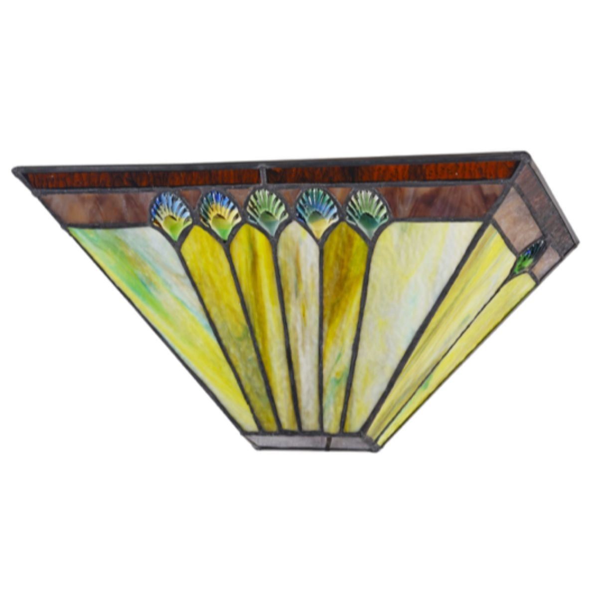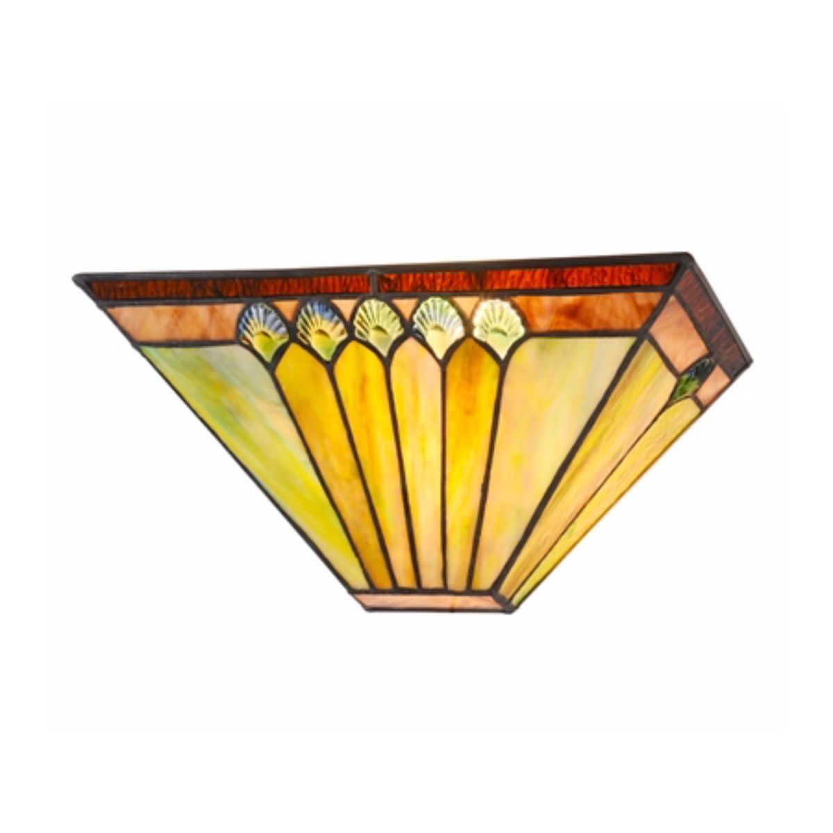 Tiffany-style Mission, 1 light, shell design, art glass, sconce light with textured black finish. Â 5" H X 12" W X 6" L.