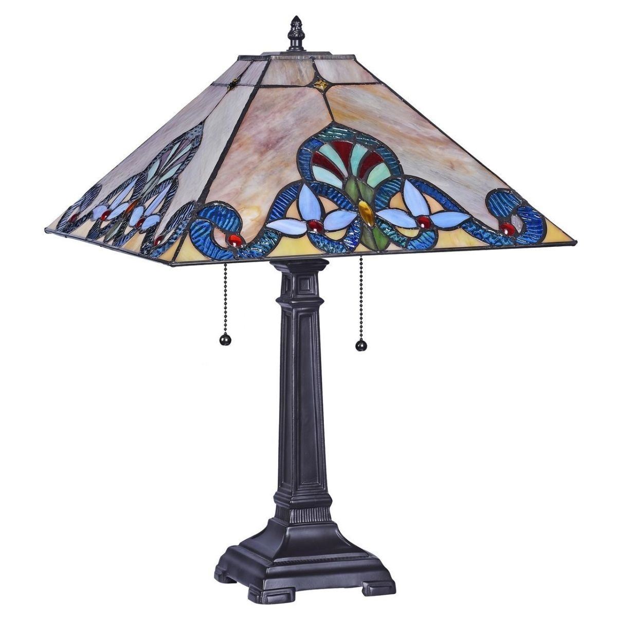 PATTY, an elegant Tiffany-style 2-light table lamp makes any table top glow in glamorous. It is a perfect lamp by your bedside or on your favorite reading desk. Glass TypeTiffany-glassNet Weight (lbs)8.16Overall Length15.94Overall Width15.94Overall Height22.00Shade Width15.70Shade Height7.09Shade Diagonal22.00Base Width5.71Base Height17.32Base/Stem MaterialsResin; MetalElectric Wire Length72Threaded Pipe/Finial Length5.43Threaded Pipe/Finial MaterialMetalWattage/Bulb Types(2) 100 Watt max E26 Type A Bulb (not included)Switch TypePull chainEst. Glass Cuts216Light DirectionDownlightSpecific UsesIndoorFinishBlackish BronzeOverall MaterialsGlass, resin, metal & electrical componentsGlass Thickness0.12Shade ShapeSquareCertificationUL ListedConsumer NoticeProposition 65UPC Code602573006542