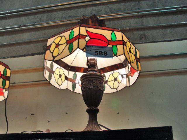 Tiffany style leaded stained glass table lamp