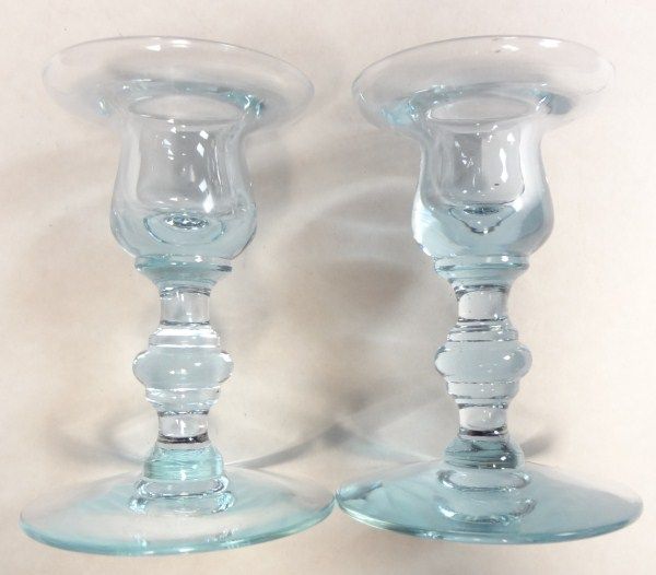Tiffin Glass Blue Candlesticks, Excellent condition. 4 1/2" tall