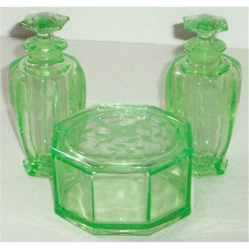 <tr><td>Title:Tiffin Green Depression Glass Etched Vanity Set</td></tr>