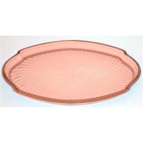 This gorgeous Art Deco pink satin Elegant Depression glass vanity tray is part of a dresser set produced by the Tiffin Glass Co., circa 1930, known as MILADY, shown and described on pages 136-137 of Whitmyer - Bedroom & Bathroom Glassware of the Depression Years. Featuring a swirl pattern and oval shape. Measuring 10" x 6" and is in excellent condition. There are also two matching perfume bottles and a powder jar, from this set, available in separate auctions.