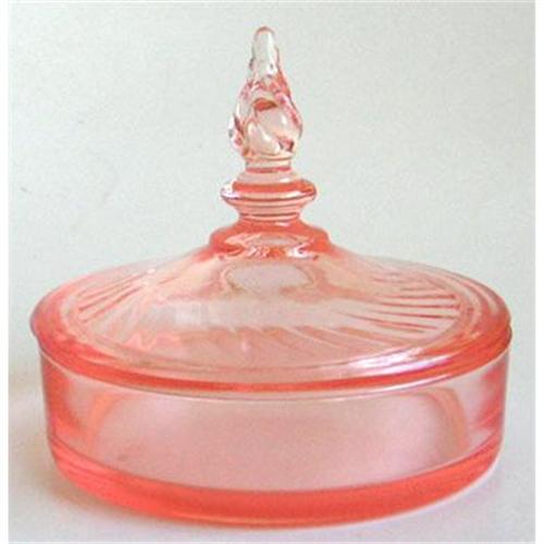 <tr><td>Title:Tiffin Milady Pink Depression Glass Powder Jar</td></tr>