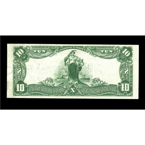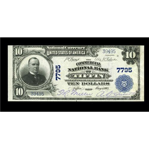 <B>Tiffin, OH</B></I> - $10 1902 Plain Back Fr. 624 <B>The Commercial NB </B></I> Ch. # 7795<BR>While the paper surfaces are of Gem quality, the tight trim at top and light handling at right result in a grade of <B> Choice Crisp Uncirculated.</B></I> The purple stamped signatures remain quite legible.