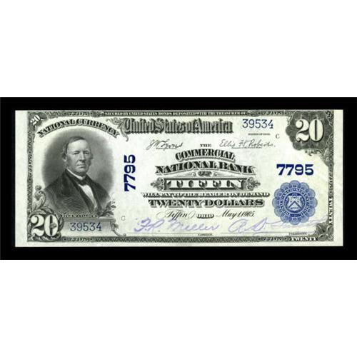 <B>Tiffin, OH</B></I> - $20 1902 Plain Back Fr. 650 <B>The Commercial NB</B></I> Ch. # 7795<BR> A lone bend to the right of center accounts for the grade. This piece is otherwise wholly original with bright paper and deep embossing. <B>Choice About Uncirculated.</B></I><BR><I>From The Walla Walla Collection</B></I><BR><BR><b>Shipping:</b> Coins & Currency (<a target="_blank" href="http://www.heritageauctions.com/common/shipping.php">view shipping information</a>)