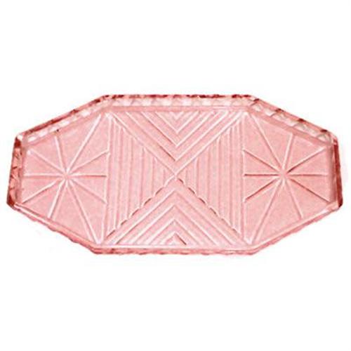 A fantastic find, this sensational pink Depression glass vanity tray is part of the 'Chipperfield' Art Deco vanity set, named by Hazel Marie Weatherman and shown on page 131 of Whitmyer - Bedroom & Bathroom Glassware of the Depression Years who attribute it to Tiffin / US Glass. With an eight sided Art Deco geometric design this rare tray is in excellent condition.
