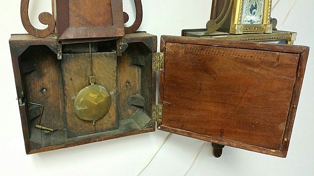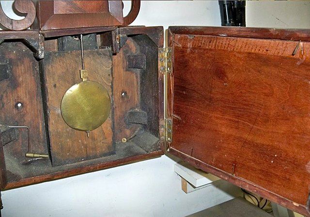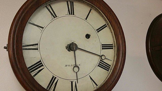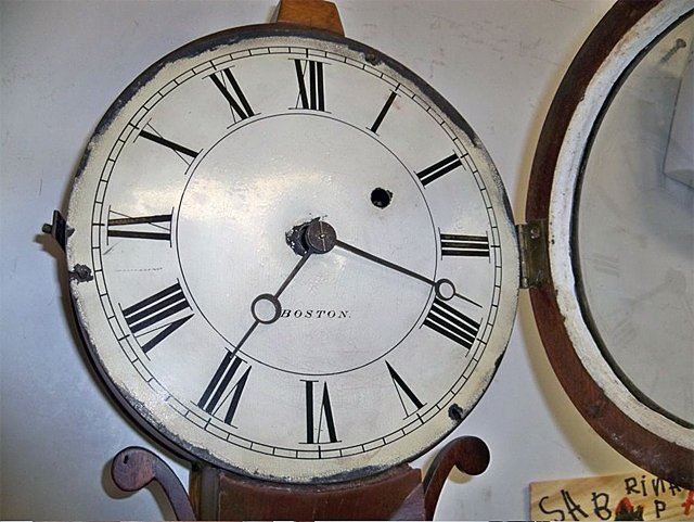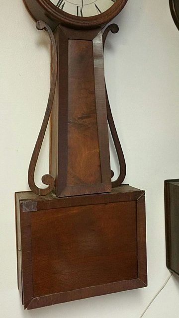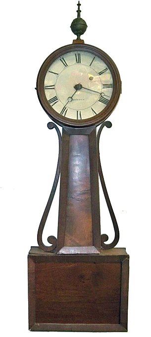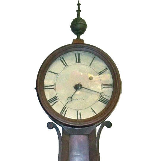 Tifft style banjo clock, c. 1840s, weight driven antique banjo clock, stamped "Boston" on dial. Nice wooden case, with wooden neck and bottom.