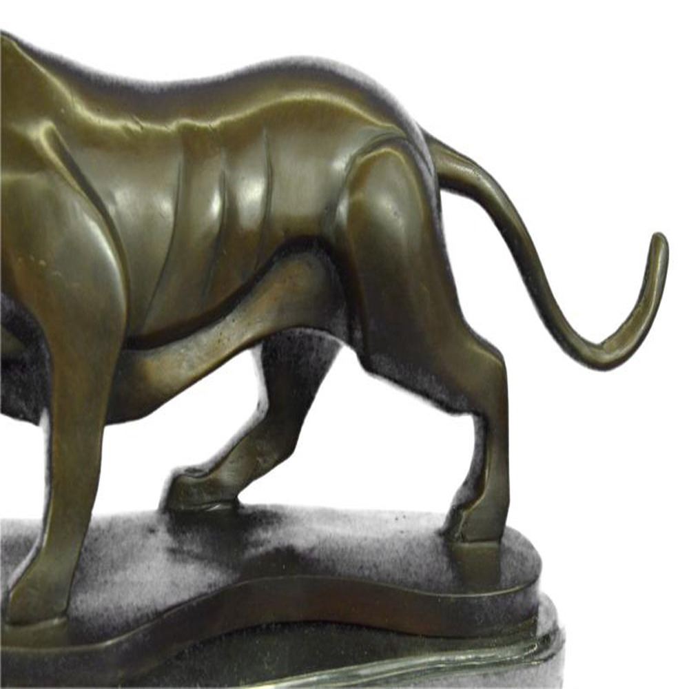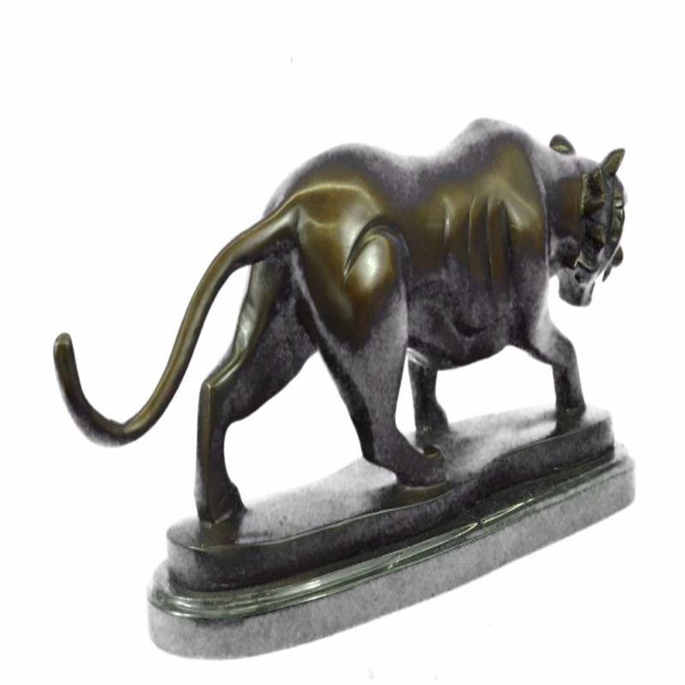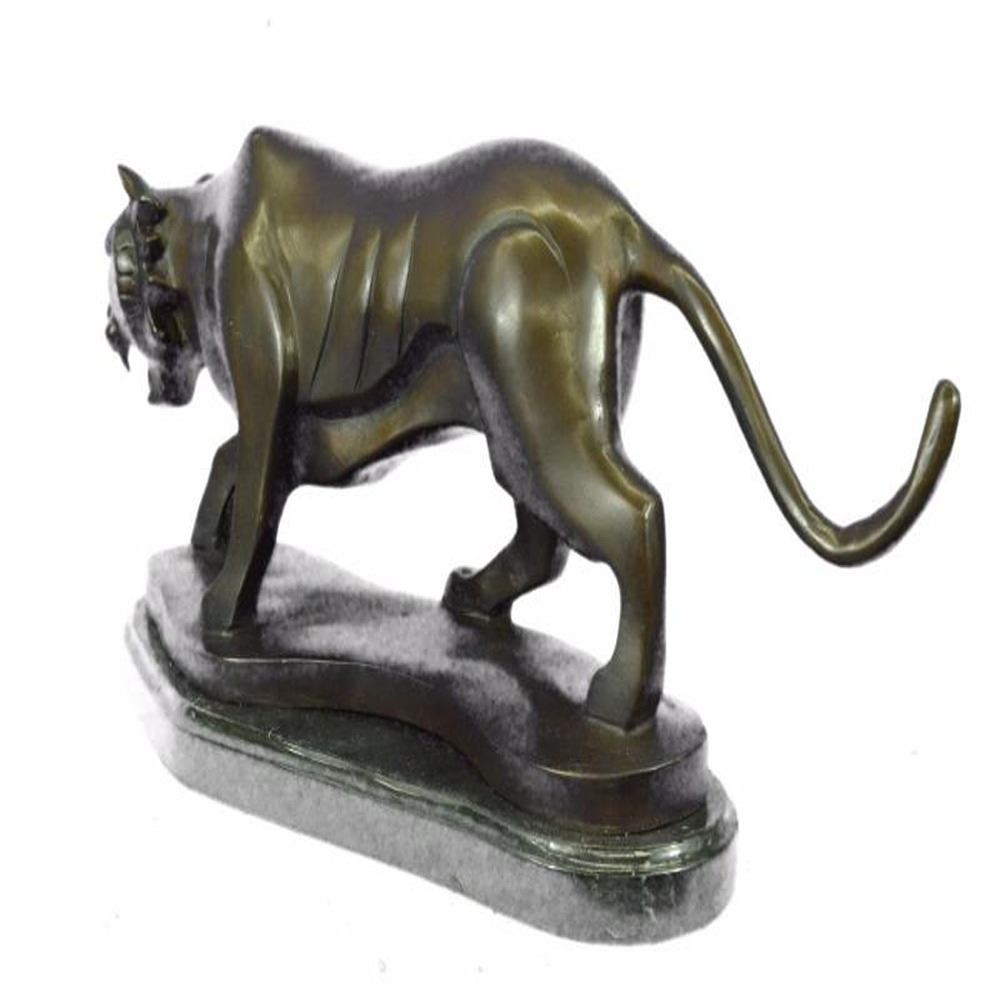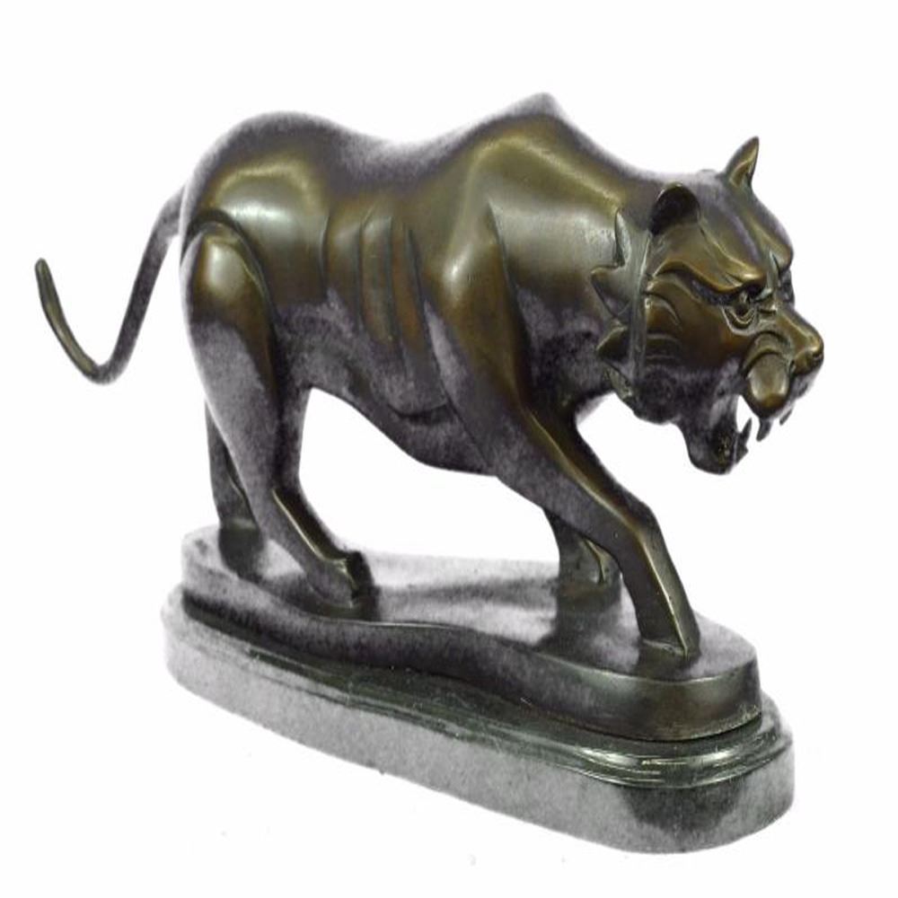 A predator among predators, the tiger is a powerful and magnificent creature. They travel alone and have pay no allegiance to anyone. They are brutal killers, and yet they are excellent caregivers for their cubs. The tiger, a member of the Felidae family, is the largest of the four big cats in the genus Panthera. Native to much of eastern and southern Asia, they are indigenous to some of the more densely populated places on earth, which has caused significant conflicts with humans. Three of the nine subspecies of modern tiger have gone extinct, and the remaining six are classified as endangered. The tiger is the worlds favorite animal dogs are the second. Some people compare the behaviors of tigers to that of humans. People can relate to the tiger, as it is fierce and commanding on the outside, but noble and discerning on the inside. This is a beautiful Sculpture cast in Bronze through the Lost Wax Method. This Sculpture was handcrafted and it is mounted on a marble base. Bronze Dimensions with Marble Base: Height 9 X Width 22 inches. Weight: 20 LBS.