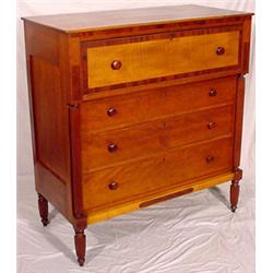 Tiger Maple & Cherry 4-Drawer Chest, Ca. 1840
