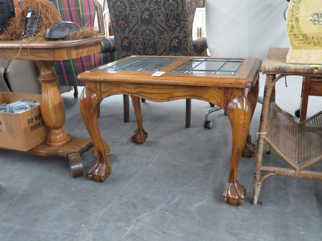 Tiger Oak Ball In Claw Leaded Glass Inset Side Table