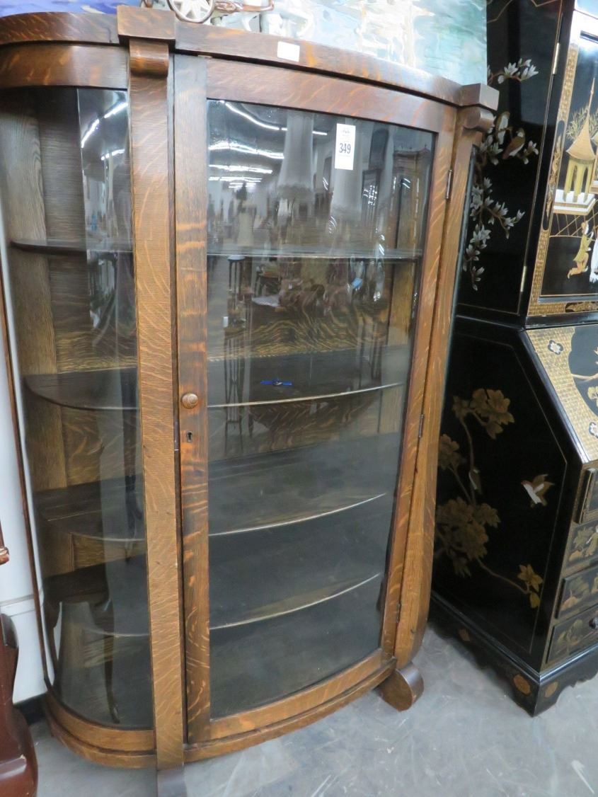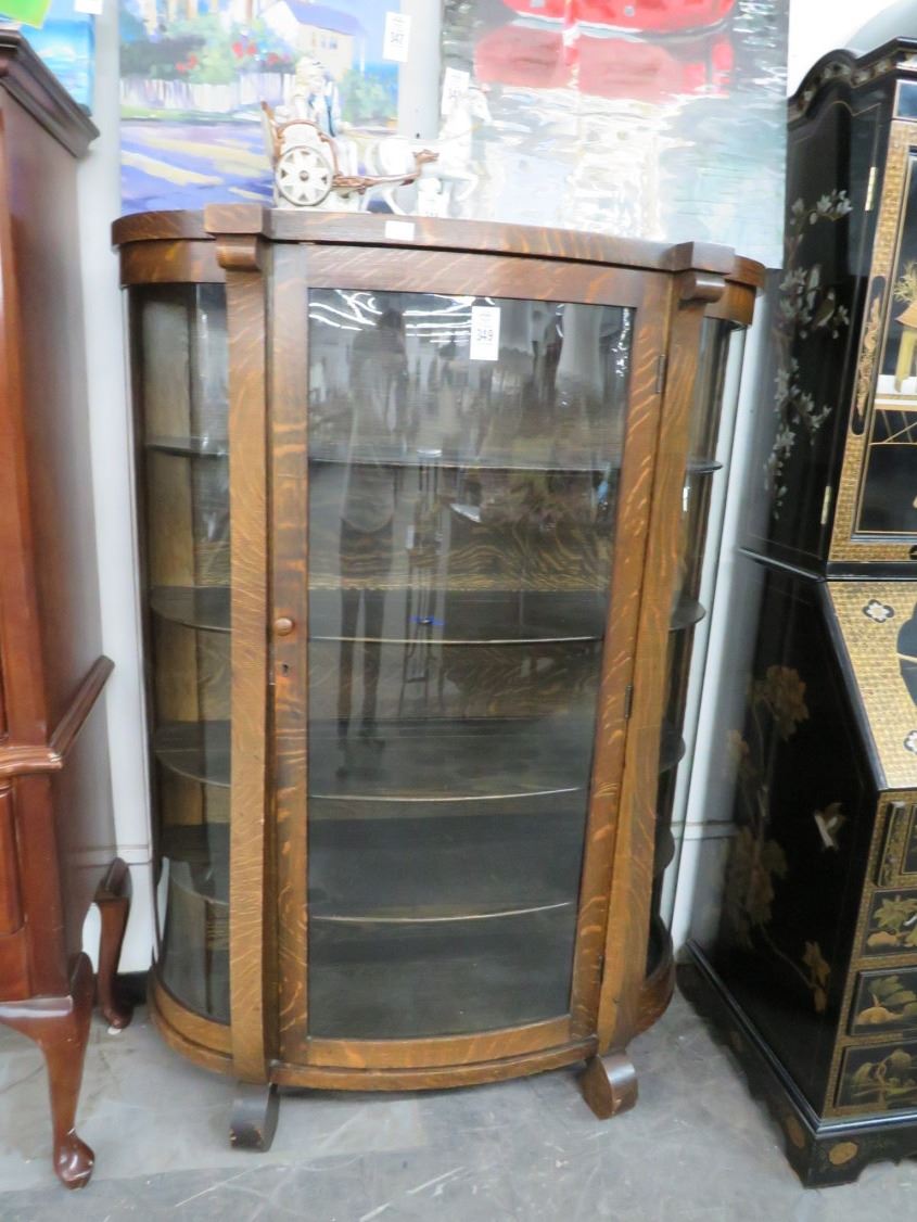 Tiger Oak Bow Front Curio