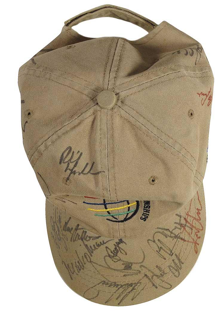 Official PGA Tour World Golf Classic baseball cap signed in black felt tip on the side by Woods, and also signed by 14 other participants. In fine condition. Pre-certified Steve Grad/PSA/DNA and RRAuction COA.