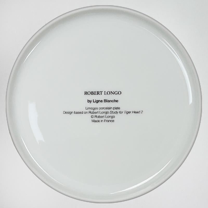 "Tiger" is a Limoges porcelain by Robert Longo. This plate is custom framed and floated on linen. Measures approx. 16" x 16" (frame), 11" (plate diameter).