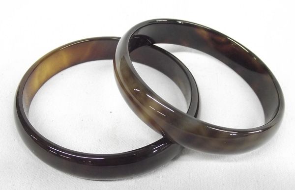 Pair Tiger's Eye Agate Bangle Bracelets, beautiful rich brown with golden colors interspersed, measures 3''D and an inside measurement of 8.25''